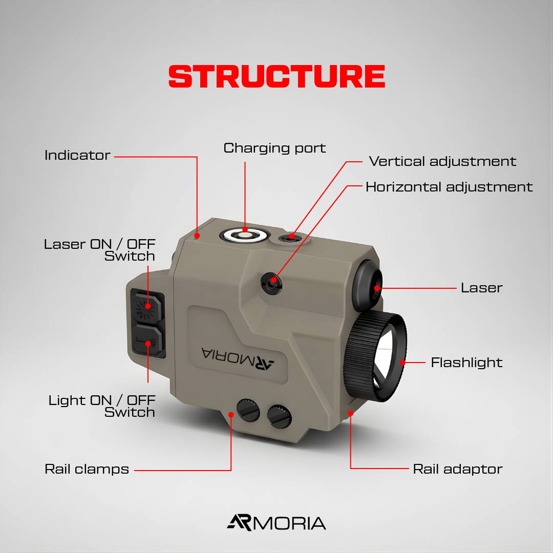 ✅ Dedicated ambidextrous switches for independent light and laser operation — Steady ON/Strobe.